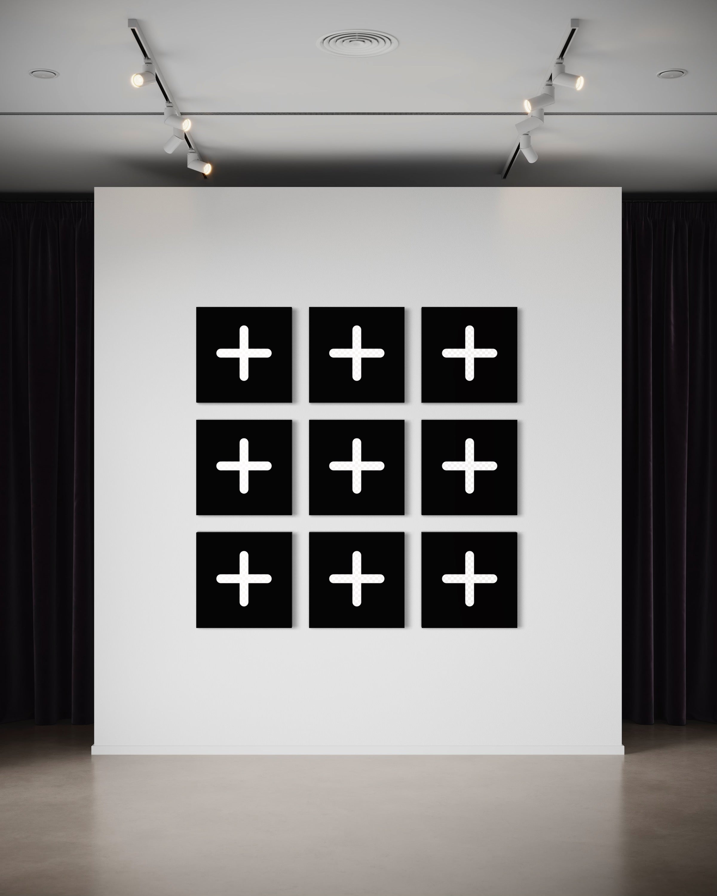 Gesamtgröße: 175 cm x 175 cm, ideal für großflächige Wandgestaltungen, bestehend aus 9 einzelnen Panels (jeweils 55 cm x 55 cm).
