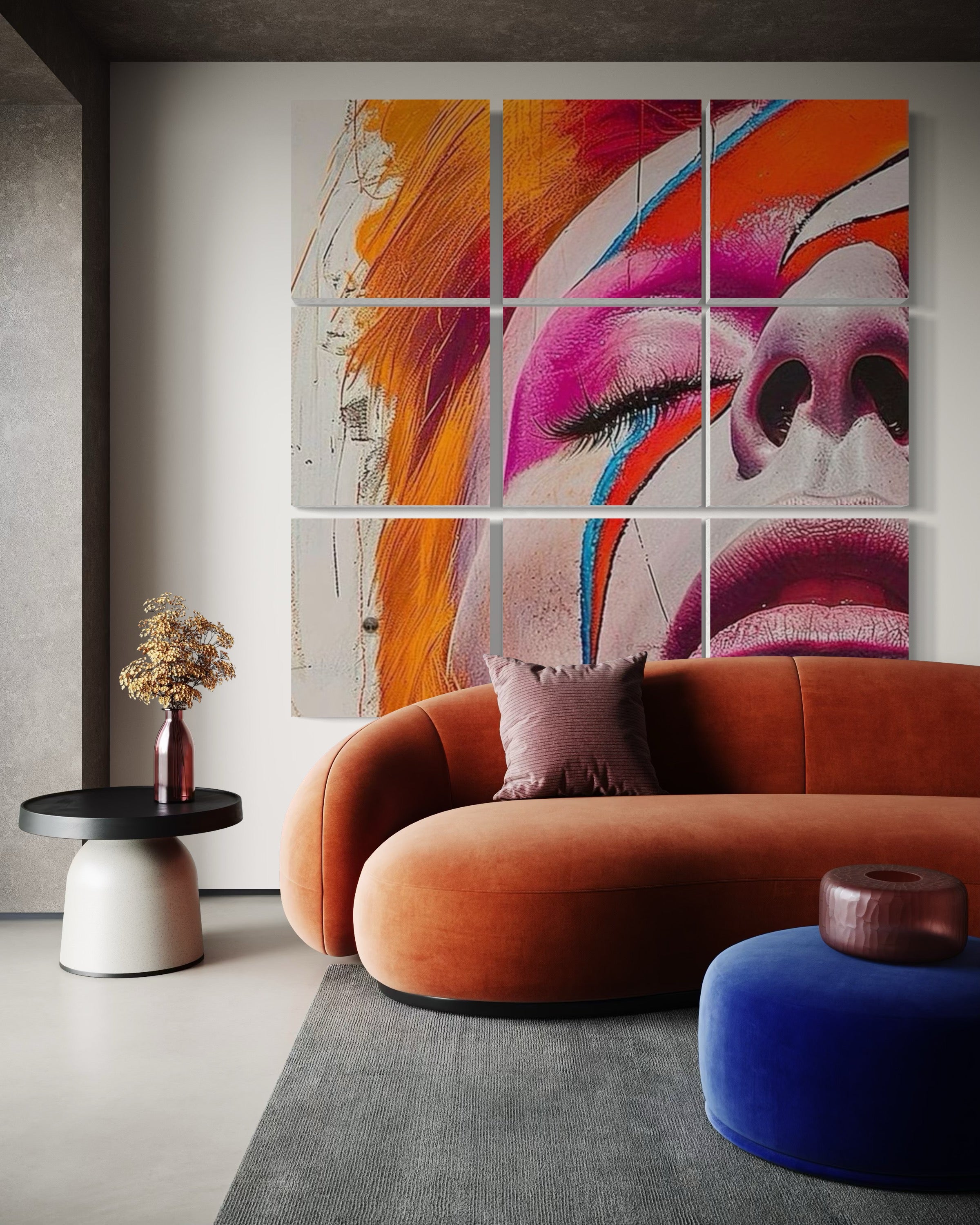 Egal, ob es sich um ein Porträt, eine Landschaft, eine abstrakte Komposition oder einen besonderen Moment handelt – diese Bildpanel-Kollage hebt Ihr gewähltes Motiv auf ein neues Niveau der Darstellung. Die Anordnung aus quadratischen Einzelpanels bietet unzählige Gestaltungsmöglichkeiten und verleiht Ihrem Kunstwerk eine dynamische und hochwertige Optik.