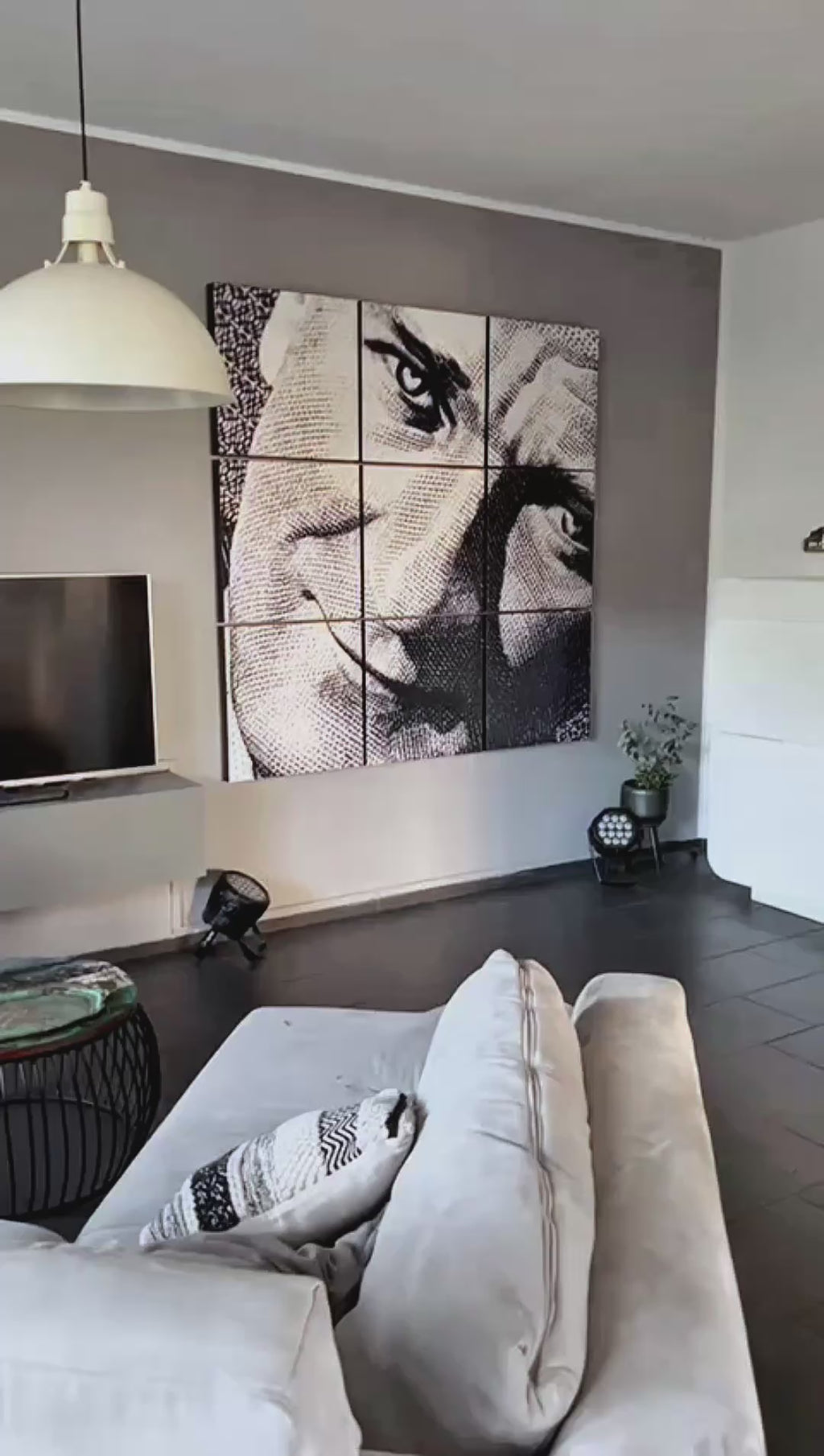 Unser Angebot umfasst eine maßgeschneiderte, bedruckte Bildpanel-Kollage mit einer Gesamtgröße von 175 cm x 175 cm und 7 cm Tiefe, die aus 9 einzelnen Panels besteht. Jedes Panel misst 55 cm x 55 cm und ist 5 cm tief. Durch die integrierten Abstandshalter von 2 cm steht das gesamte Kunstwerk insgesamt 7 cm von der Wand ab, was einen eleganten schwebenden Effekt erzeugt und das Bild besonders ins Szene setzt.